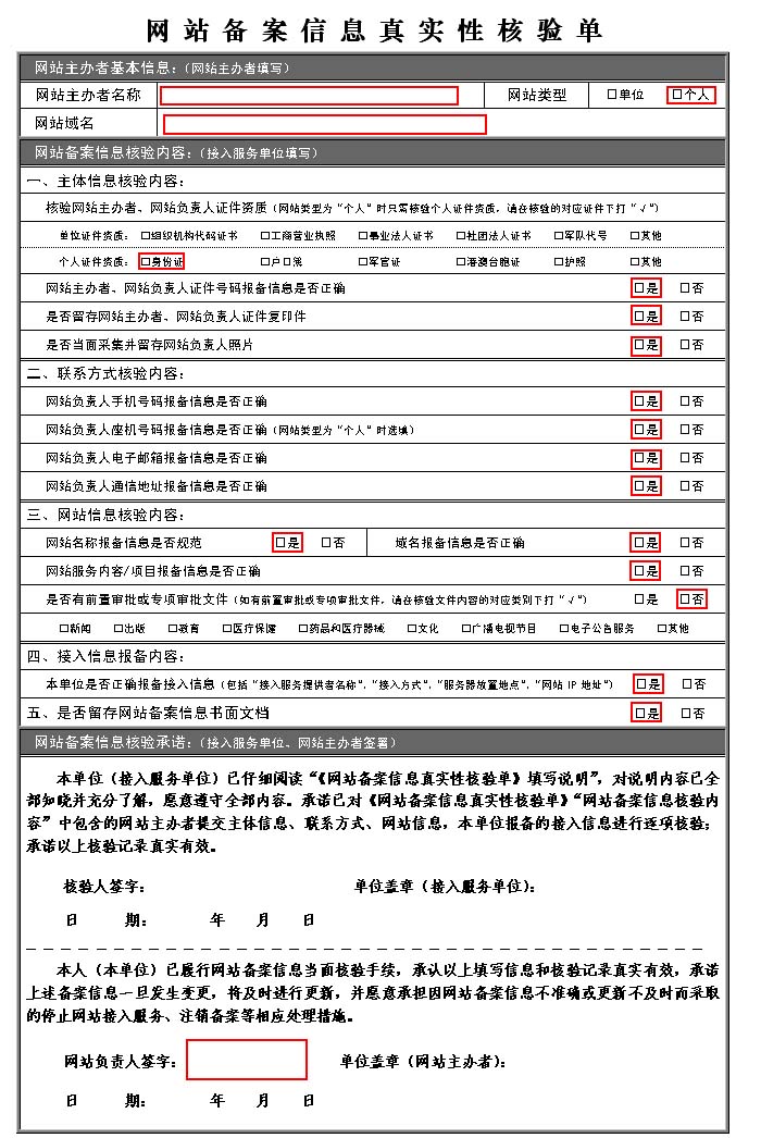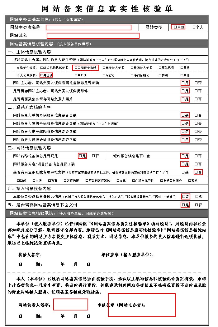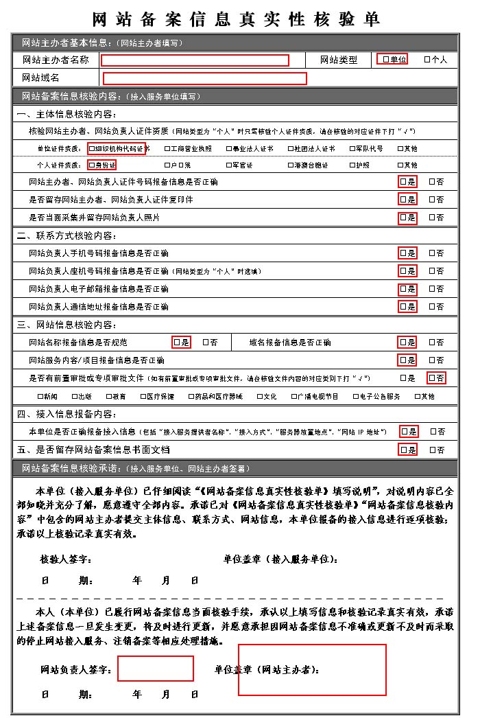 網(wǎng)站工信部備案??核驗單下載:網(wǎng) 站 備 案 信 息 真 實 性 核驗  單.doc網(wǎng)站備案信息真實性核驗單填寫范例: